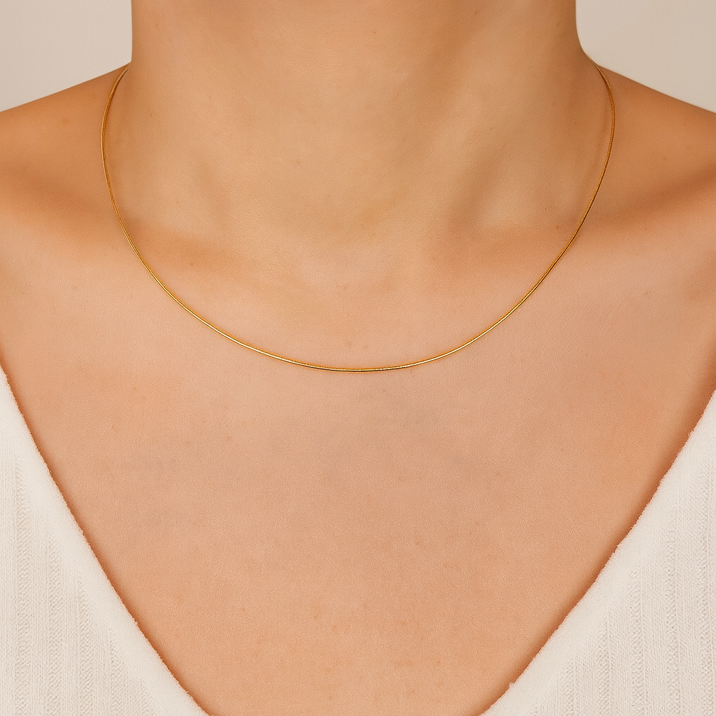 Su superficie lisa y continua refleja la luz como un espejo, creando un halo sutil alrededor del cuello. Fabricada en plata de ley 925, es firme y sofisticada, perfecta para lucir sola en su minimalismo o como base sólida para realzar tus amuletos Laforce.