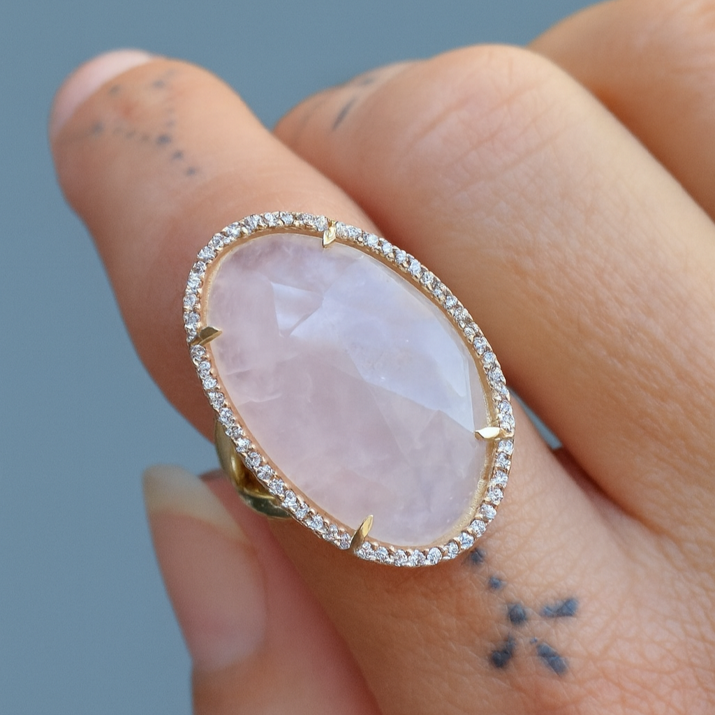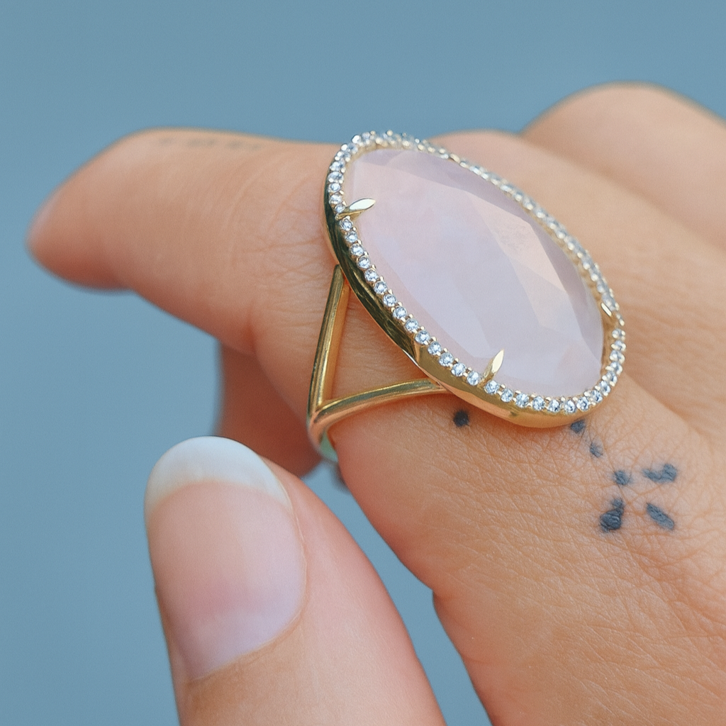 Su cuarzo rosa natural, imponente y suave a la vez, canaliza una energía de amor propio, compasión y conexión con tu niña interior.