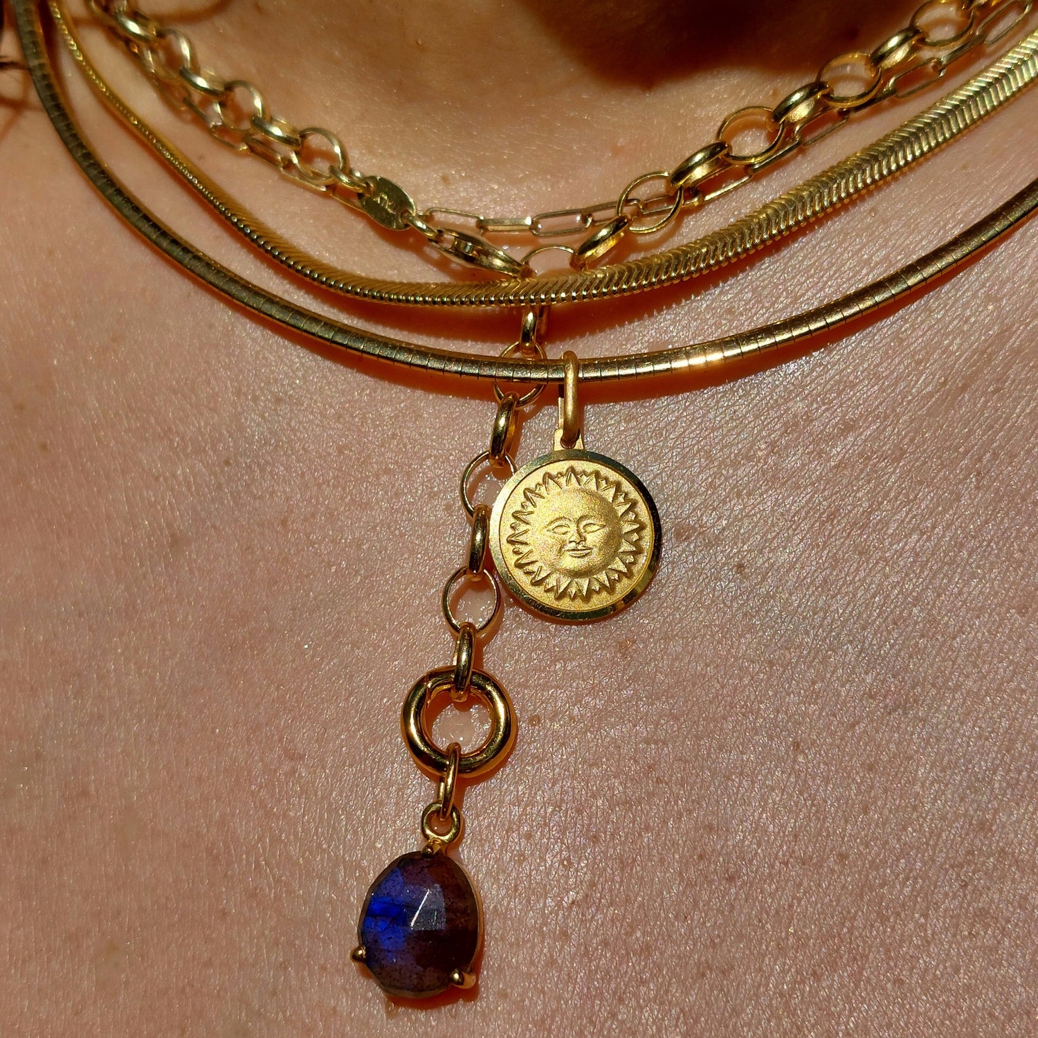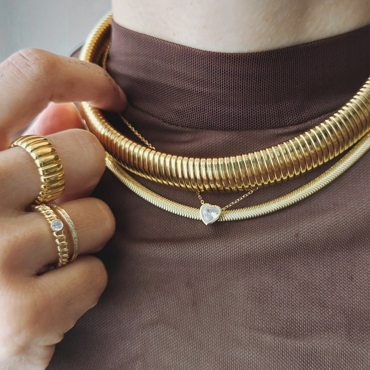 Su diseño compacto de eslabones entrelazados crea una textura fluida y continua que abraza el cuello con elegancia. Fabricada en plata de ley 925 y bañada en oro de 18k, es una pieza con presencia y versatilidad: perfecta para llevar sola como declaración de estilo o para realzar el significado de tus amuletos Laforce.