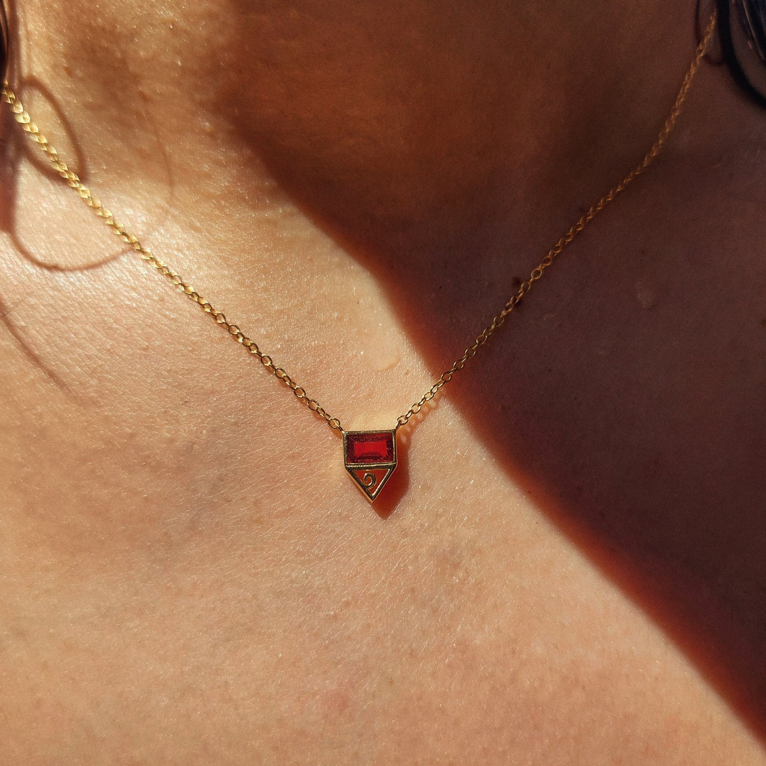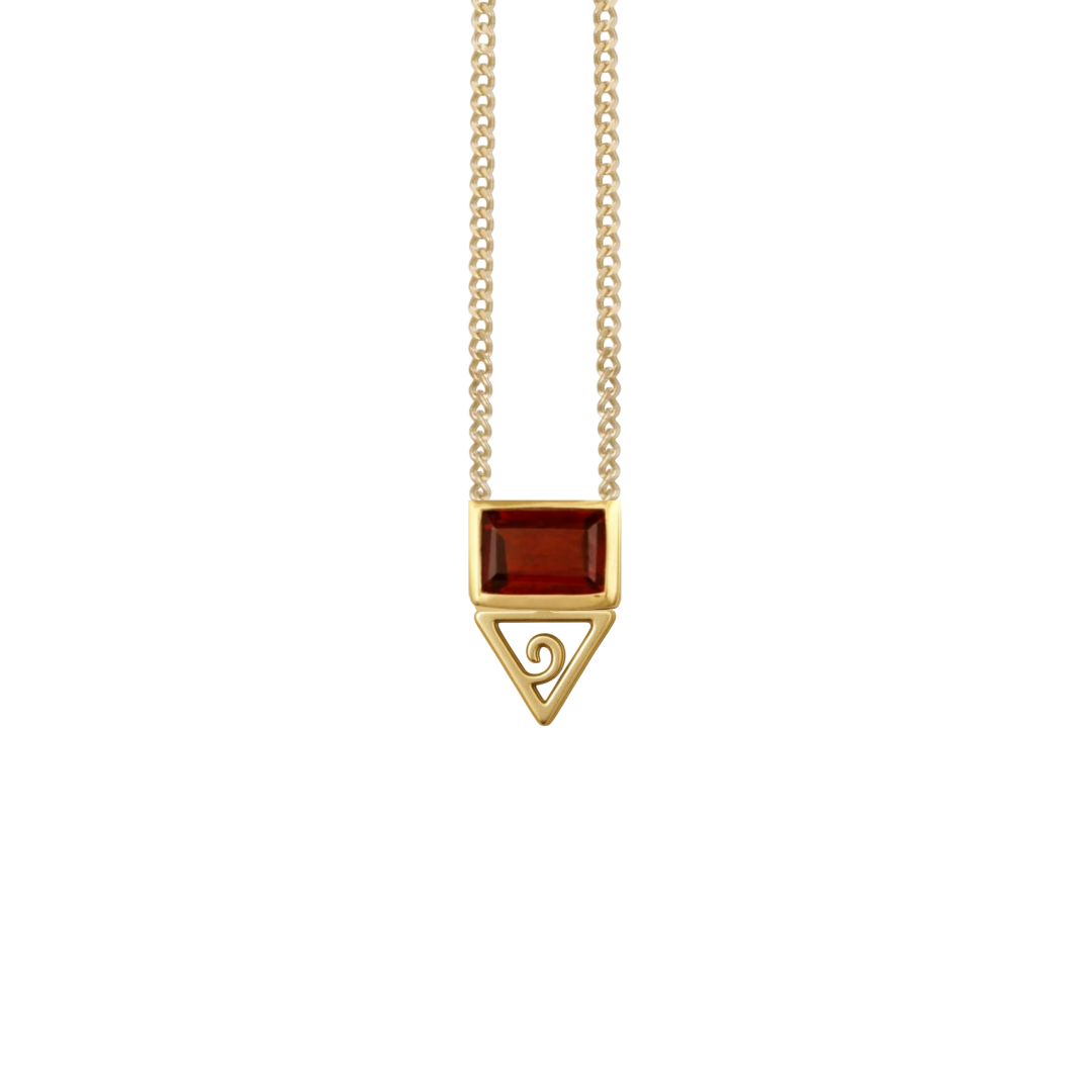 La piedra granate, encendida como un corazón en calma, sostiene la chispa de tu fuego vital. Este collar honra la esencia de Sekhmet: la fuerza que desciende, el fuego que despierta la conciencia y el poder que se interioriza.