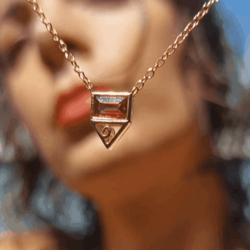 Un talismán forjado para encarnar el descenso del poder. El triángulo invertido —símbolo de lo receptivo y lo sagrado— abre el cuerpo a las memorias ancestrales.