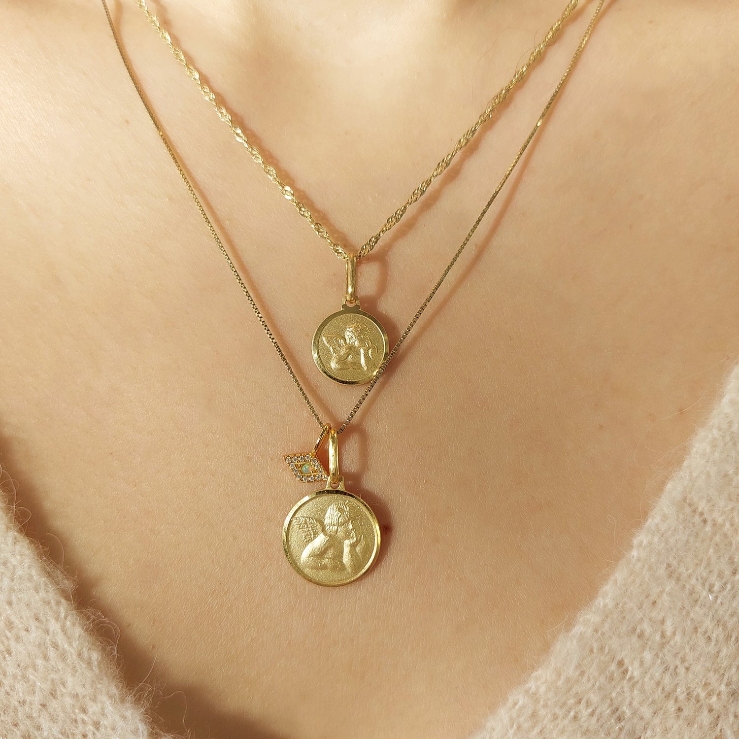 Una versión más delicada de nuestro amuleto Ángel Protector. Este colgante representa la energía protectora de los ángeles, ideal para llevar siempre cerca del corazón o regalar a alguien especial.