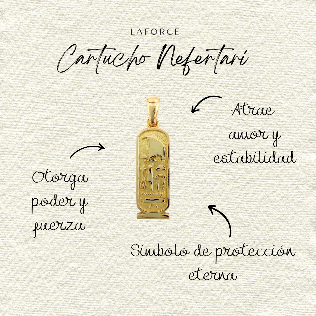 Inspirado en la legendaria reina del antiguo Egipto, este cartucho está grabado con jeroglíficos que simbolizan amor, fortaleza, alegría y protección. Un talismán sagrado que conecta con tu energía vital y refuerza tu luz interior.
